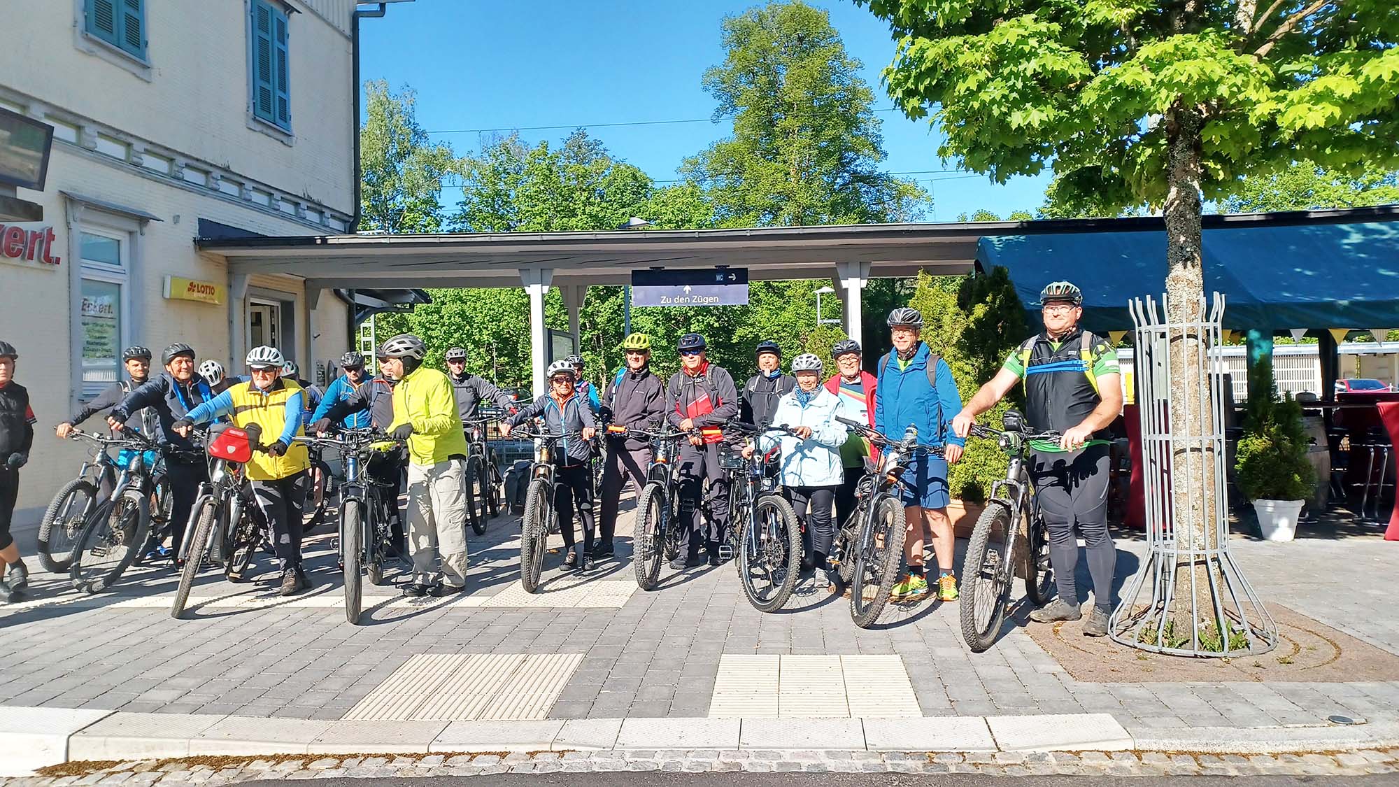 Der Start am Sonntag, 11. Mai 2025, war schon einmal vielversprechend. Die Damen des Wander-Informationszentrums in Baiersbronn empfingen die 19 Radler/innen aus dem Bezirk Kinzigtal sowie aus Emmendingen mit Getränken und Energieriegel. Desgleichen begrüßten Renate und Willi Seid als Bezirksvorsitzende Kniebis die Gruppe.