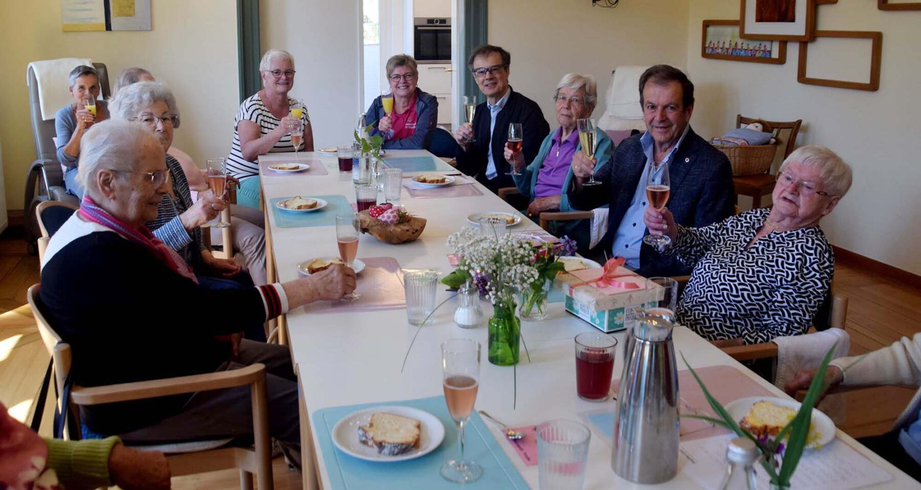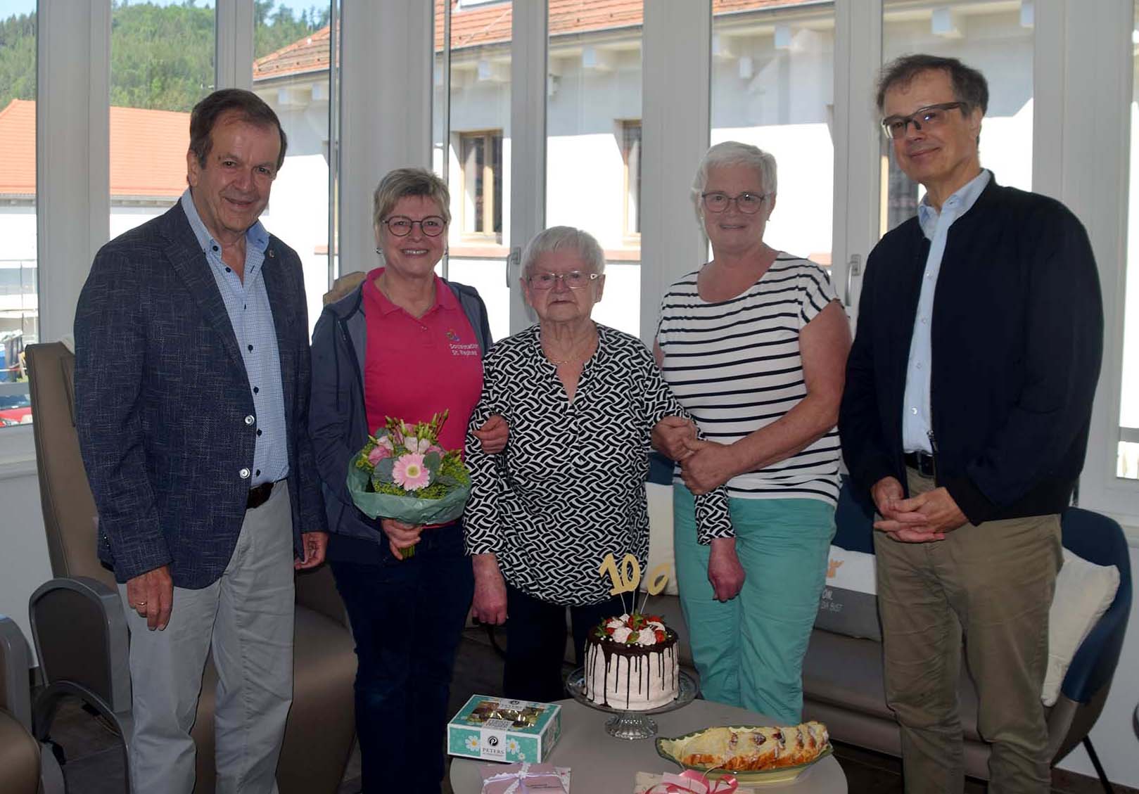 In der Kirchlichen Sozialstation St. Raphael wurde mit einem Glas Sekt auf ihren seltenen Geburtstag angestoßen.
