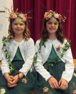 Die schöne Tradition bei Chamäleon: Am Ende stellen sich alle Kinder persönlich und ihre Rolle vor. Für Katja Prochazkov-Körnle gibt es noch eine schöne Überraschung am Schluss: Sie erhält als Dank von jedem Kind eine Blume und ein Kompliment. Darüber freute sie sich sichtlich. Ihre Unterstützerin in allen Belangen Ingrid Pfend erhielt ebenfalls Blumen.