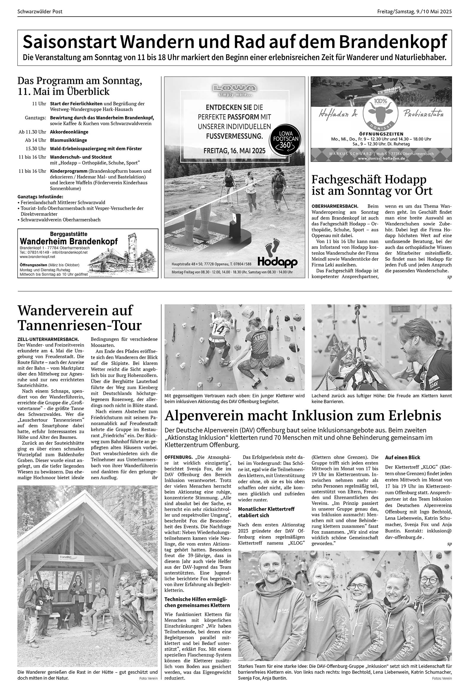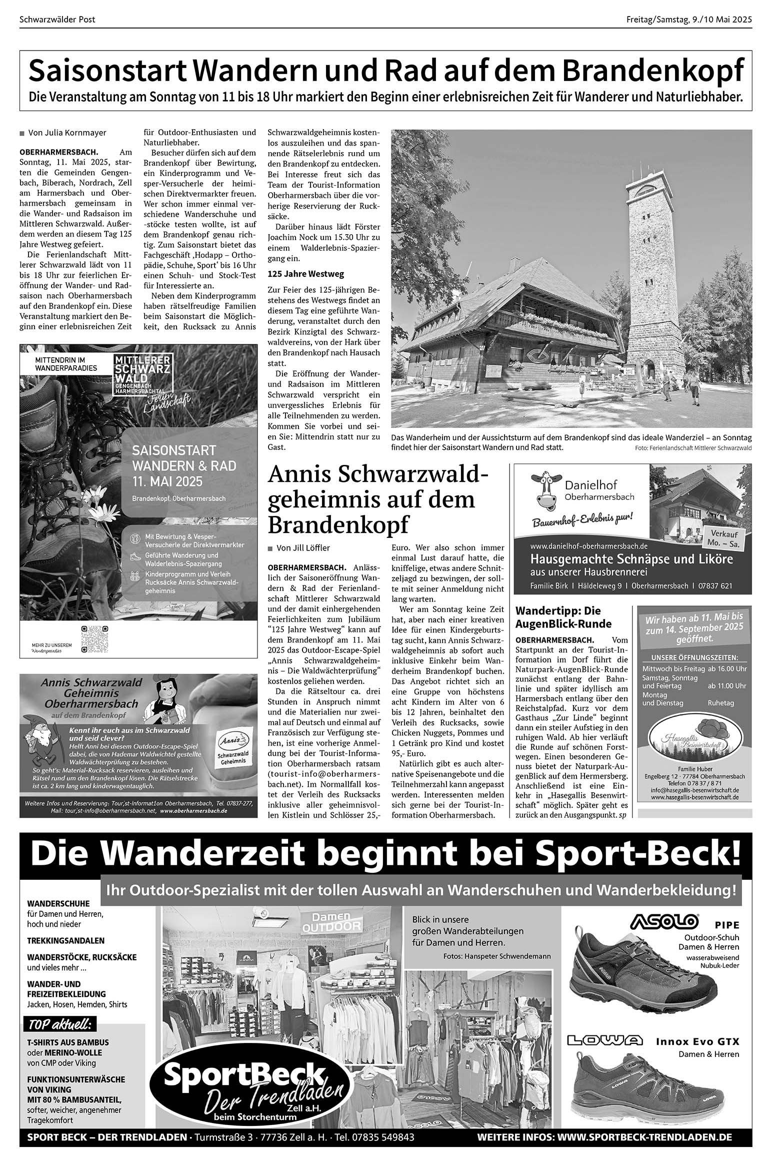 Zell am Harmersbach | 9.05.2025 Saisonstart Wandern und Rad auf dem Brandenkopf Foto:Das Wanderheim und der Aussichtsturm auf dem Brandenkopf sind das ideale Wanderziel – an Sonntag findet hier der Saisonstart Wandern und Rad statt. Foto: Ferienlandscha Mittlerer Schwarzwald von Schwarzwälder PostDie Veranstaltung am Sonntag von 11 bis 18 Uhr markiert den Beginn einer erlebnisreichen Zeit für Wanderer und Naturliebhaber. Foto: SP Foto: SPDas könnte Sie auch interessieren:Foto: Reinhold Messner / MundologiaReinhold Messner: „Der Nanga Parbat hat…Der SKC Unterharmersbach steht kurz vor…Foto: Inka Kleinke-Bialy„Gemeinsam statt einsam“:…