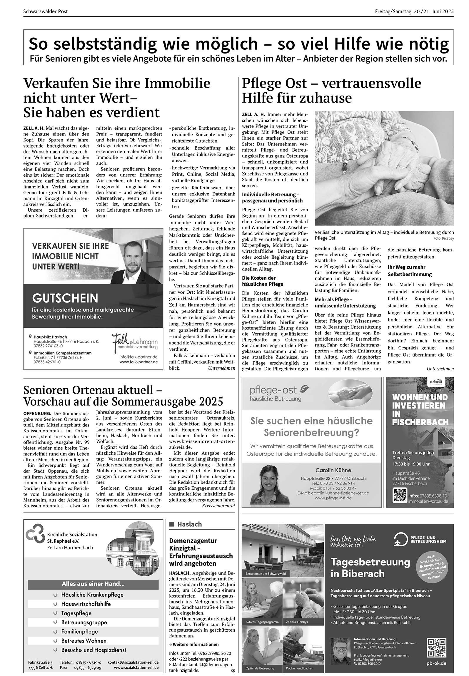 Zell am Harmersbach | 20.06.2025 So selbstständig wie möglich – so viel Hilfe wie nötig Foto:Verlässliche Unterstützung im Alltag – individuelle Betreuung durch Pflege Ost. Foto: Pixabay von Schwarzwälder PostFür Senioren gibt es viele Angebote für ein schönes Leben im Alter – Anbieter der Region stellen sich vor. Foto: SPDas könnte Sie auch interessieren:Foto: privatGoldenes Leistungsabzeichen: Zwei…Foto: Reinhold Messner / MundologiaReinhold Messner: „Der Nanga Parbat hat…Foto: Inka Kleinke-Bialy„Gemeinsam statt einsam“:…