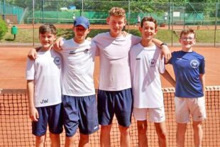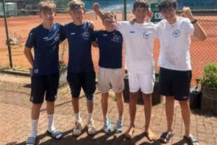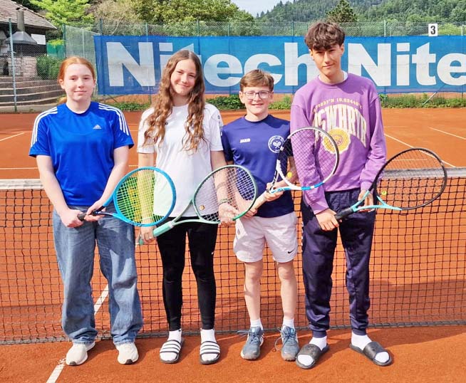 Bei feinstem Aprilwetter im Juni konnten Jannis und Tessa Riehle sowie Olivia Amler ihre Einzelspiele jeweils in zwei Sätzen für sich entscheiden. Jannis hatte im ersten Satz gegen seinen Gegner etwas Mühe, im zweiten Satz den Dreh raus und gewann diesen recht deutlich. Tessa lieferte sich mit ihrer Gegnerin ein spannendes Spiel, in dem beide Spielerinnen ihr ganzes Können aufboten. Olivia war ihrer Gegnerin in jedem Satz ein Break voraus und entschied das spannende und von beiden Spielerinnen und sehr ansehnlich geführte Match für sich. Mattis und sein Gegner lieferten sich über drei Sätze ein packendes Duell auf hohem Niveau. Im Match-Tie-Break lag Mattis zu Beginn etwas zu weit zurück, um diesen noch gewinnen zu können.