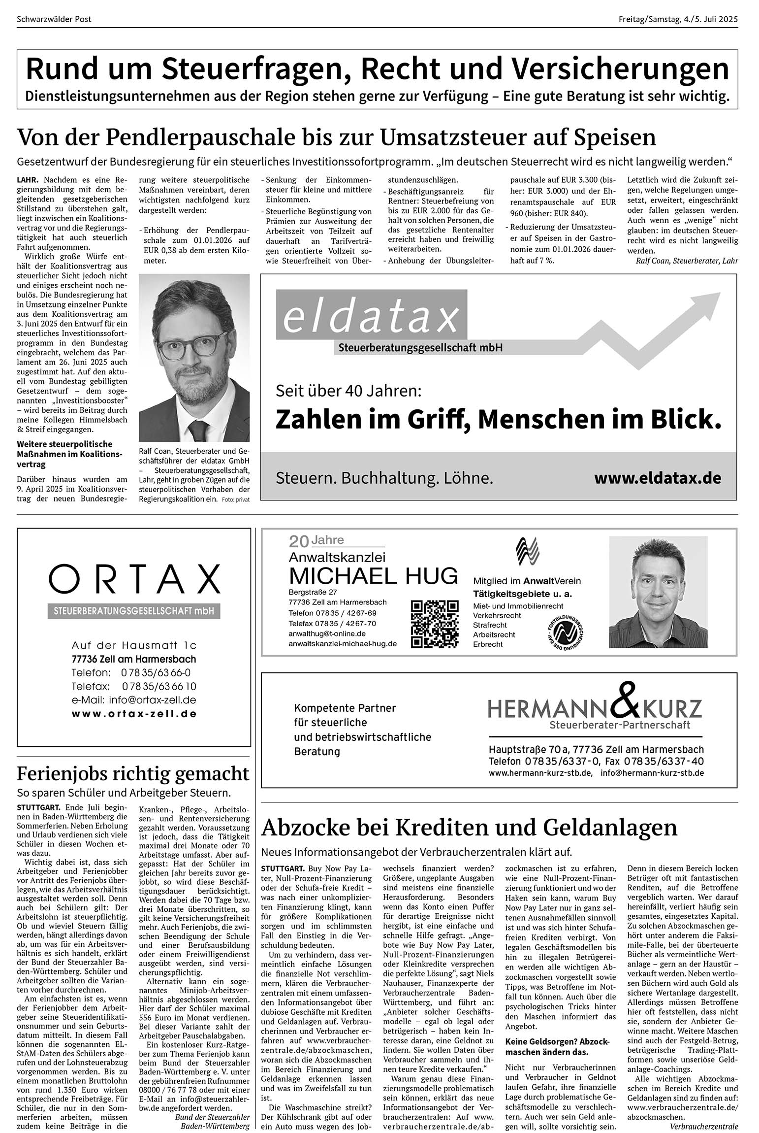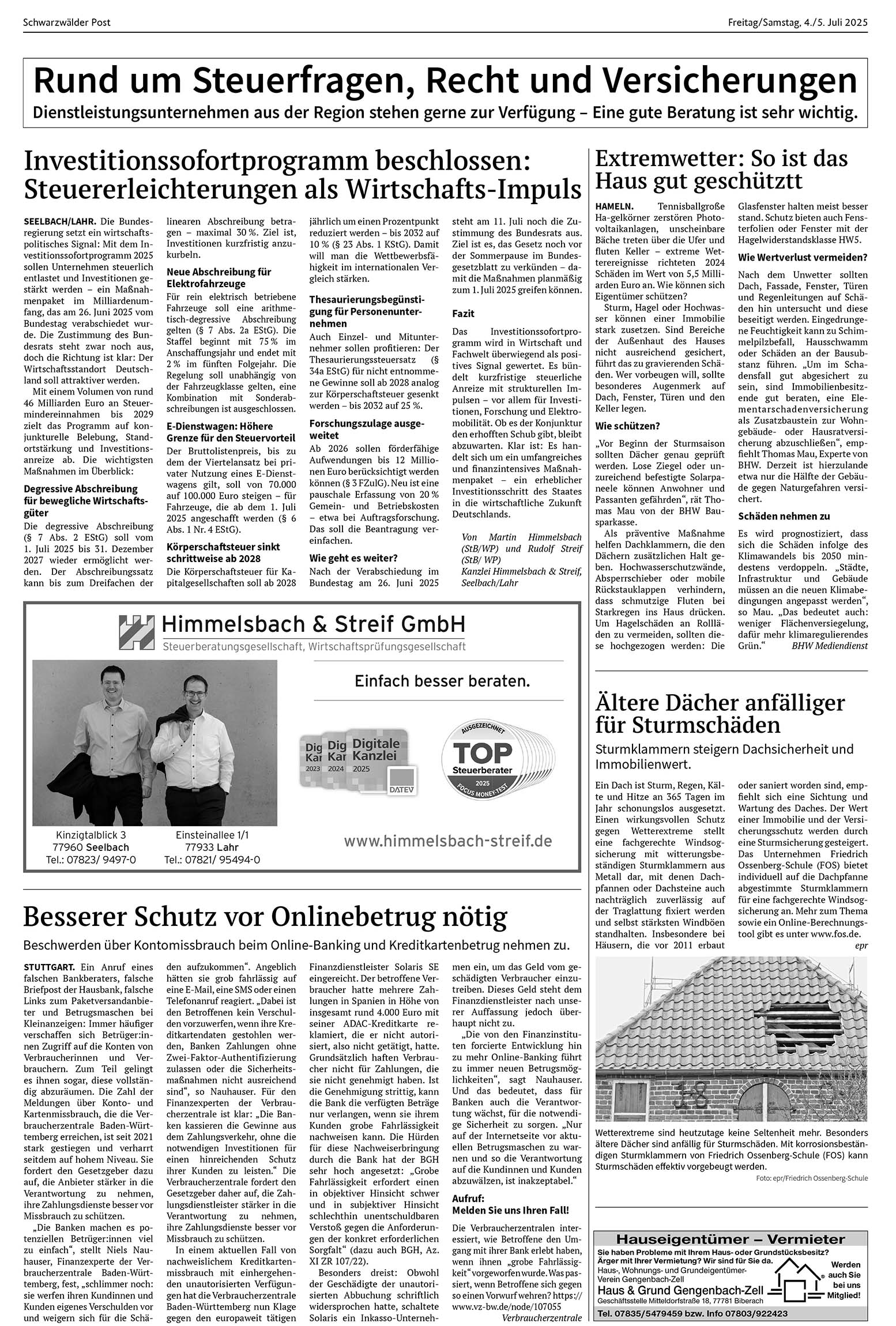 Zell am Harmersbach | 4.07.2025 Rund um Steuerfragen, Recht und Versicherungen von Schwarzwälder PostDienstleistungsunternehmen aus der Region stehen gerne zur Verfügung – Eine gute Beratung ist sehr wichtig. Foto: SP Foto: SPDas könnte Sie auch interessieren:Wichtiger FVB-HeimsiegFoto: Inka Kleinke-BialyNikolausmarkt mit NeuigkeitenFoto: Inka Kleinke-Bialy„Gemeinsam statt einsam“:…