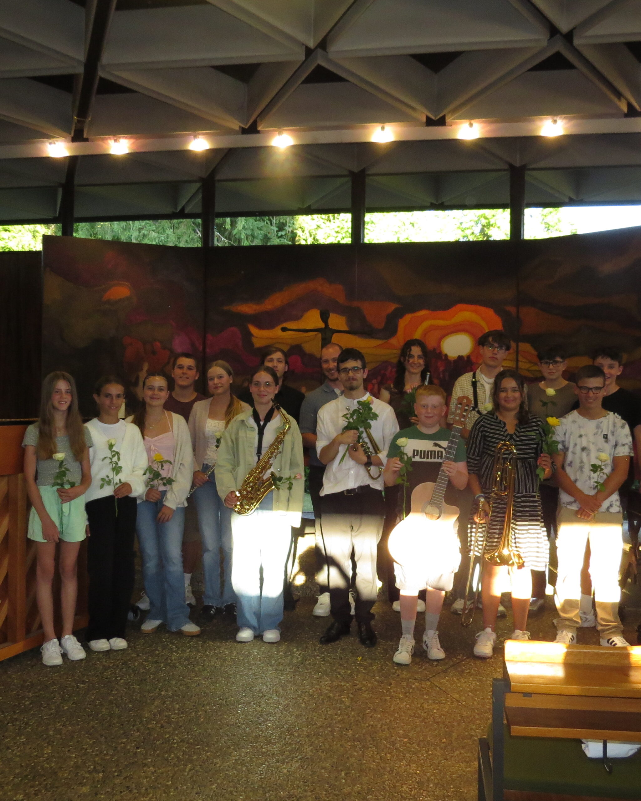Zum Abschluss interpretierten Lilli Uhl und Luis Bayh auf dem Saxophon „The Entertainer“ von Scott Joplin sichtlich selbstbewusst. Lucia Krämer-Stöhr bedankte sich bei allen Teilnehmenden mit einer Rose. Das Publikum zeigte mit langem Applaus seine Anerkennung für einen rundum gelungenen Konzertabend.