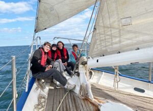 Zurück auf dem Schiff packten alle mit an und schrubbten gründlich das Deck. Bei einer frischen Brise war die Arbeit schnell erledigt. Nach dem Mittagessen stachen wir in See zu unserem letzten Ziel: Rostock.