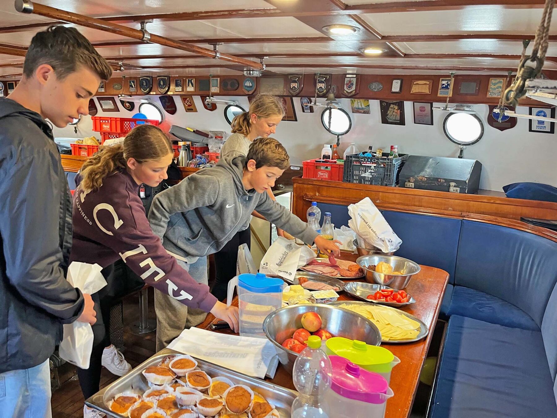 Dann folgte die große Putzaktion. Nach dem Motto „viele Hände, schnelles Ende“ waren wir in Teams eingeteilt und jeder packte mit vollem Einsatz an. Es hieß Kombüse schrubben, Wäsche versorgen, Kammern und Toiletten putzen. Als das Schiff wieder glänzte, hieß es Abschied nehmen und wir mussten aufbrechen.