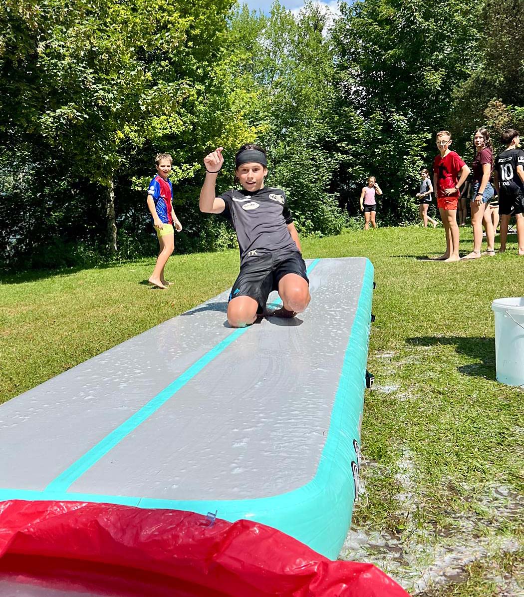Wer lieber in Bewegung war, freute sich über den Postenlauf, Wanderungen, spannende Vertrauensspiele oder die legendäre Lagerdisco. Auch die Wasserspiele mit anschließendem Rutschen über die mitgebrachte Airtrack-Bahn bot Action pur.