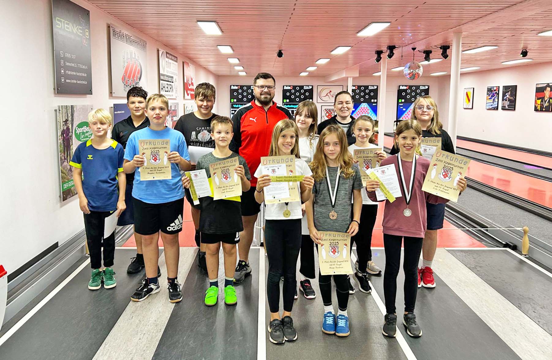 Bei den U14 machten die Zwillinge Maja (72 Kegel) und Nele Pohlmann (70 Kegel) Platz 1 und 2 unter sich aus. Mit 61 Kegel kletterte Maja Kuderer mit Platz 3 noch auf einen Podestplatz. Auf den Plätzen folgten 4. Platz: Lea Alender (54 Kegel); 5. Platz: Emil Kornmeier (47 Kegel); 6. Platz: Mia Boschert und Florian Panter (46 Kegel); 8. Platz: Jonas Lingenfelder (26 Kegel); 9. Platz: Magnus Kornmeier (24 Kegel); 10. Platz: Liah Hoferer (19 Kegel); 11. Platz: Joel Fernandez (17 Kegel).