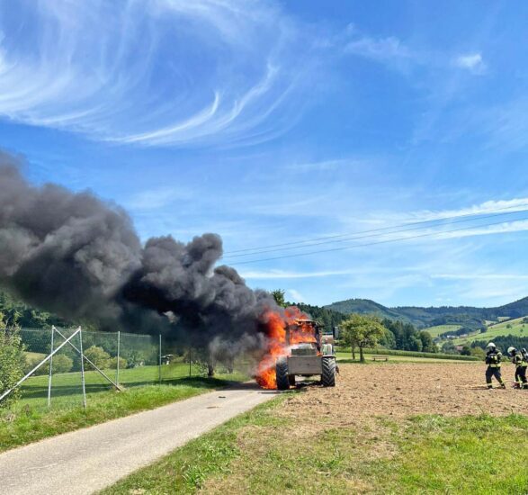 Am Dienstagnachmittag um 13.20 Uhr wurde ein brennender Traktor mit einer Sämaschine in der Pflugstraße beim Golfplatz auf einem Feldweg gemeldet. Glücklicherweise konnten der Traktorlenker und sein Sohn das Fahrzeug unbeschadet verlassen.