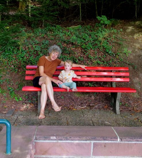 Meine Lieblingsbank steht am Panorama-Kneipp-Rundweg an der Wassertretstelle nahe der Radiumquelle. Dort ist es auch an heißen Sommertagen immer schattig und angenehm kühl, meistens geht etwas Wind. Ich bin mit meinem Enkel Hennig oft da gewesen, dem Kleinen gefällt der geringe Wasserstand der Tretstelle und der nahe Wald als Spielplatz. Von der Bank hat man einen herrlichen Blick auf Zell und weiter hinaus in das Kinzigtal und die Berge im Hintergrund. Vorne sieht man Wiesen mit Obstbäumen und Felder. Wenn man früh morgens da, gibt es mit etwas Glück grasende Rehe zu sehen.