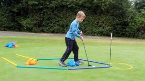 Auf der Anlage des Golfclubs Gröbernhof übten die Kinder Abschläge und probierten verschiedene Schlägerarten – vom Driver bis zum Hybrid. Auch der Golfclub freut sich über Nachwuchs: gc-groebernhof.de.