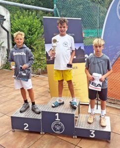 Für Theo Sapparth vom TC Zell 2005 lief es diesmal nicht rund. Sowohl im Auftaktspiel gegen Jannis Löffler vom TCO als auch in der Nebenrunde gegen Frederik Stier vom TC Blau-Weiß Bohlsbach musste er Niederlagen hinnehmen. Am Ende durfte er sich aber über Platz zwei in der Nebenrunde und einen Pokal als Trostpreis freuen. Sein Vereinskamerad Salomon Künstle sorgte dagegen für ein echtes Highlight. Im Halbfinale kämpfte er sich nach einem 1:6, 0:4-Rückstand gegen Jakob Frank vom TC Kenzingen spektakulär zurück und drehte das Match im Tiebreak mit 10:4. Auch im Finale behielt er nach verlorenem erstem Satz die Nerven und gewann erneut im Match-Tiebreak gegen den topgesetzten Damian Flaschkowatz vom TC Wasenweiler.