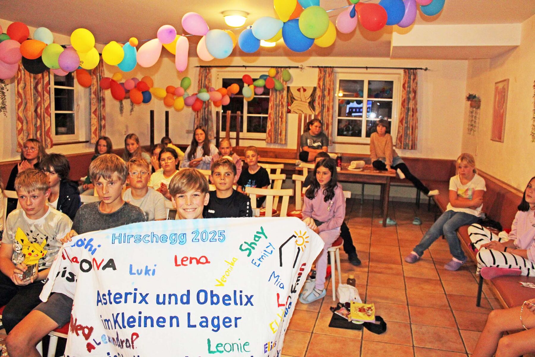 Auch auf dem Haus Bergheimat, in dem das „Kleine Ferienlager“ dieses Jahr untergebracht war, gab es einiges zu tun. Bei vielen Programmpunkten, wie unter anderem Klein gegen Groß, 1,2 oder 3, eine Hausrallye, ein Rollenspiel, Disco, ein Casinoabend und Kino, wurde keinem langweilig.