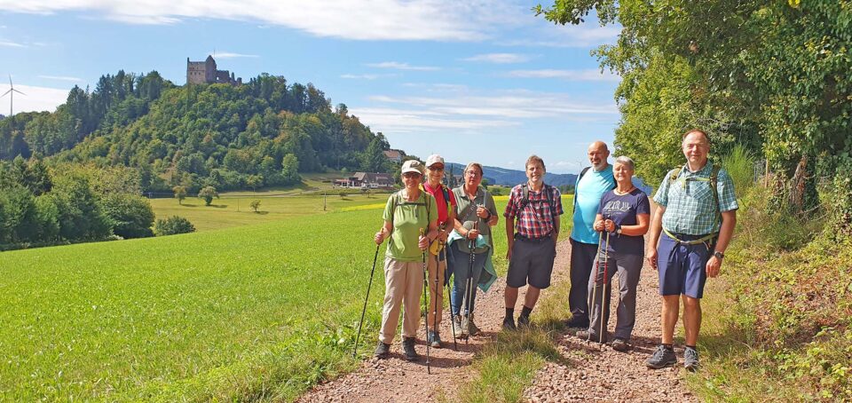 Nach einem kurzen Kapellenbesuch und der schönen Aussicht weit ins Kinzigtal ging es nun bergauf, bis die Burg Geroldseck hoch erhoben auf dem Felsen auftauchte. Seit dem 13. Jahrhundert thront die Burg auf diesem Felsen auf 520 Metern über dem Meer mit einer wechselhaften Geschichte. Hoch oben auf der Burg eine herrliche Aussicht über den Schwarzwald und ins Oberrheintal bis in die Vogesen.