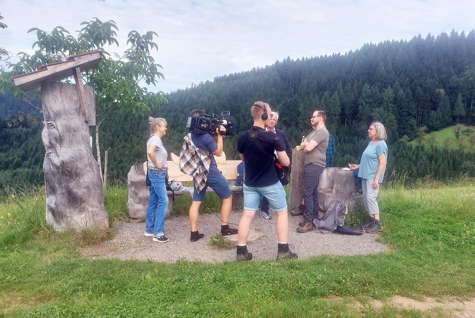 Der Drehtag begann mit einer Wanderung auf dem Premium-Wanderweg Hahn und Henne. Vom Aussichtspunkt Höllhaken öffnete sich der Blick über die Schwarzwaldlandschaft – ein eindrucksvoller Auftakt für die Aufnahmen.