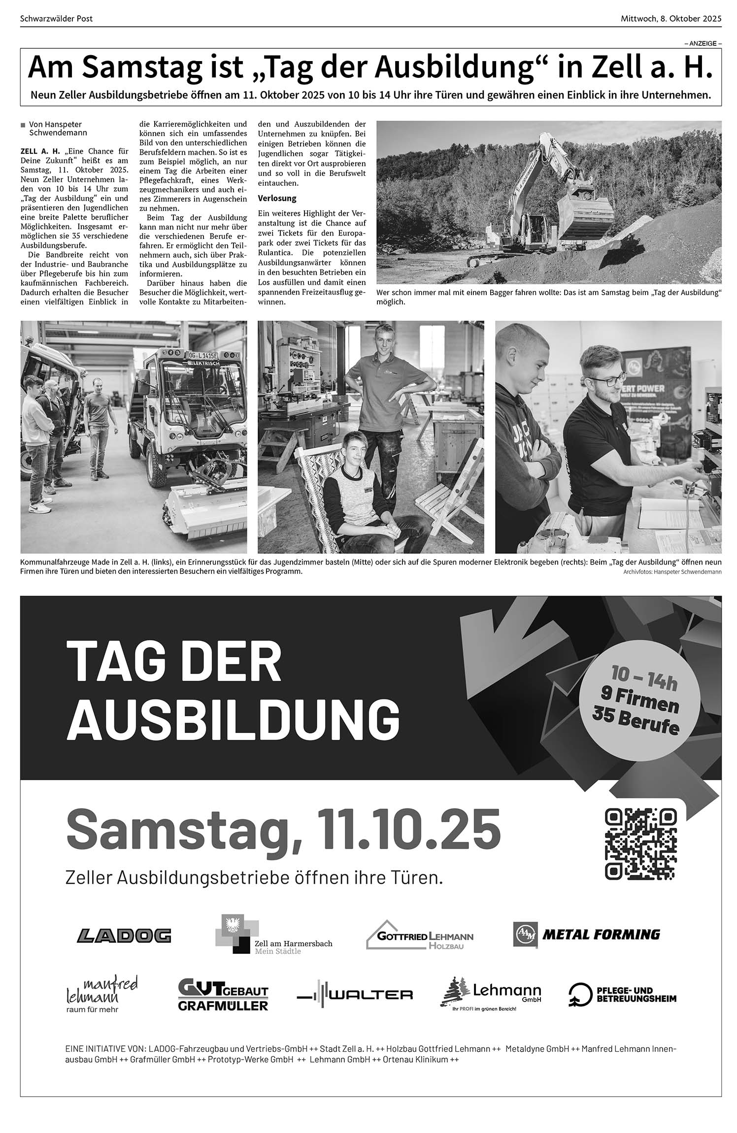 Neun Zeller Ausbildungsbetriebe öffnen am 11. Oktober 2025 von 10 bis 14 Uhr ihre Türen und gewähren einen Einblick in ihre Unternehmen.