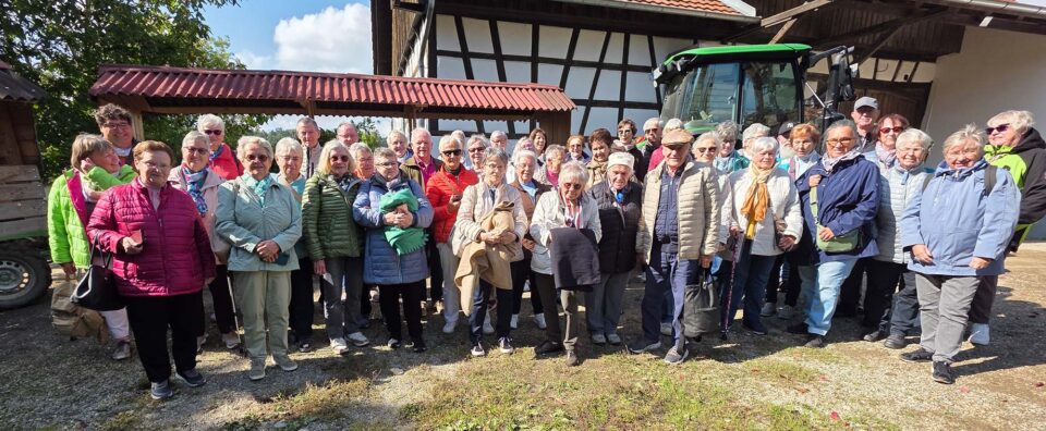 Bei bestem Herbstwetter machten sich 47 Teilnehmerinnen und Teilnehmer mit Reiseleiterin Sabine Boschert auf den Weg zum Hof Neuhaus bei Überlingen am Bodensee. Schon auf halber Strecke wurde die Fahrt durch eine Rast am Hegau-Rasthof versüßt: Sabine Boschert servierte selbst gebackenen Apfelkuchen, der schnell großen Zuspruch fand.
