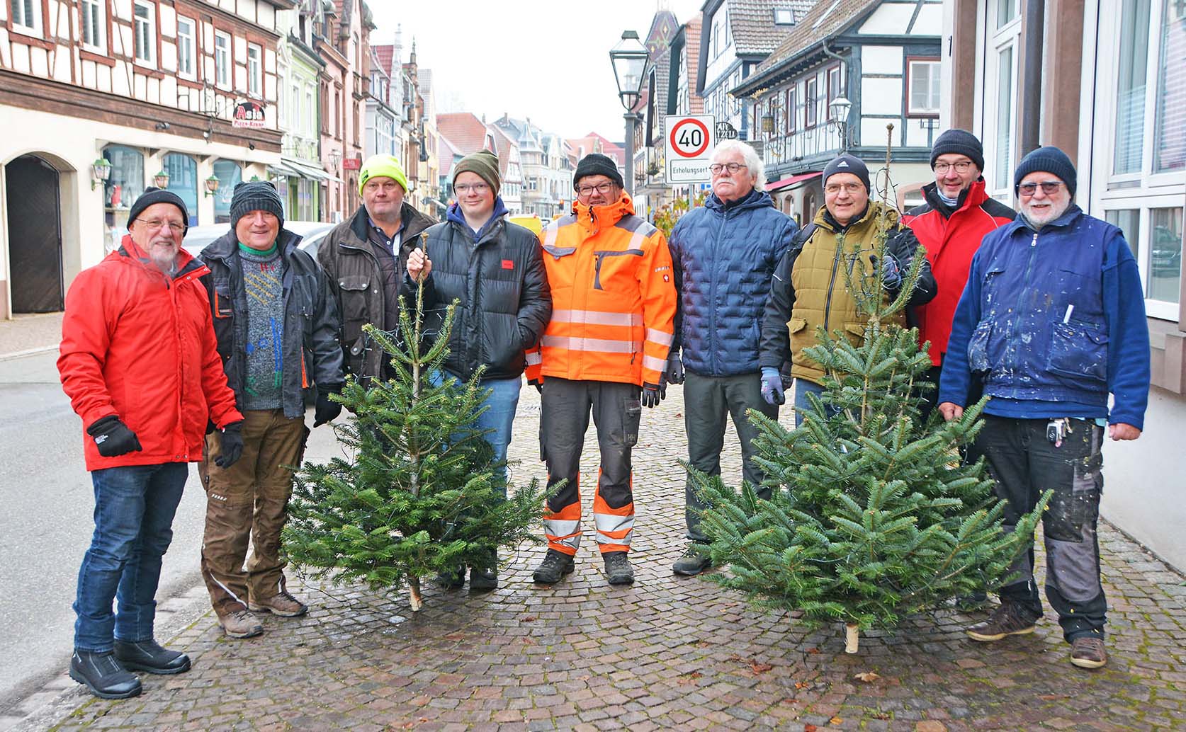 Eine Gemeinschaftsaktion hat sich in den vergangenen Jahren besonders bewährt. Unter der Regie von HGV-Vorstand Paul Lehmann unterstützt ein Aktionsteam die Geschäftsleute beim Montieren der Tannenbäume. Wie im Vorjahr haben sich Mitglieder des Zeller Turnvereins zum Tannenbaum-Einsatz bereiterklärt. Selbst zwei Hausgäste vom Hotel „Klosterbräustuben“ haben am vergangenen Samstag mitgeholfen. Besonders großzügig zeigt sich einmal mehr Hotelier Paul Lehmann, der die Helferschar nach getaner Arbeit zum Schnitzelessen eingeladen hat.