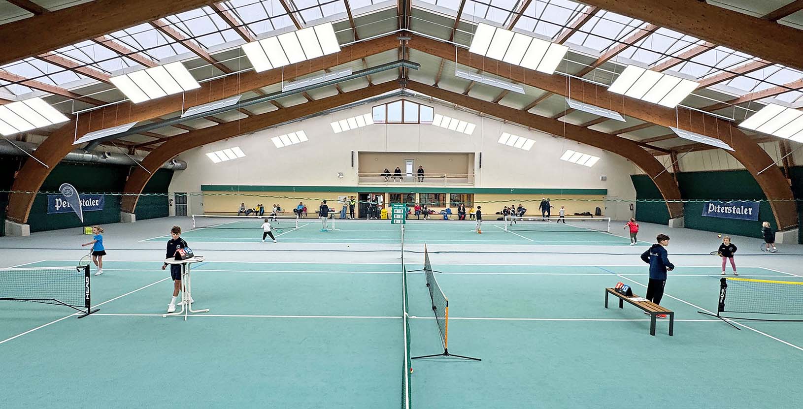 Gut organisierte Tennishalle.