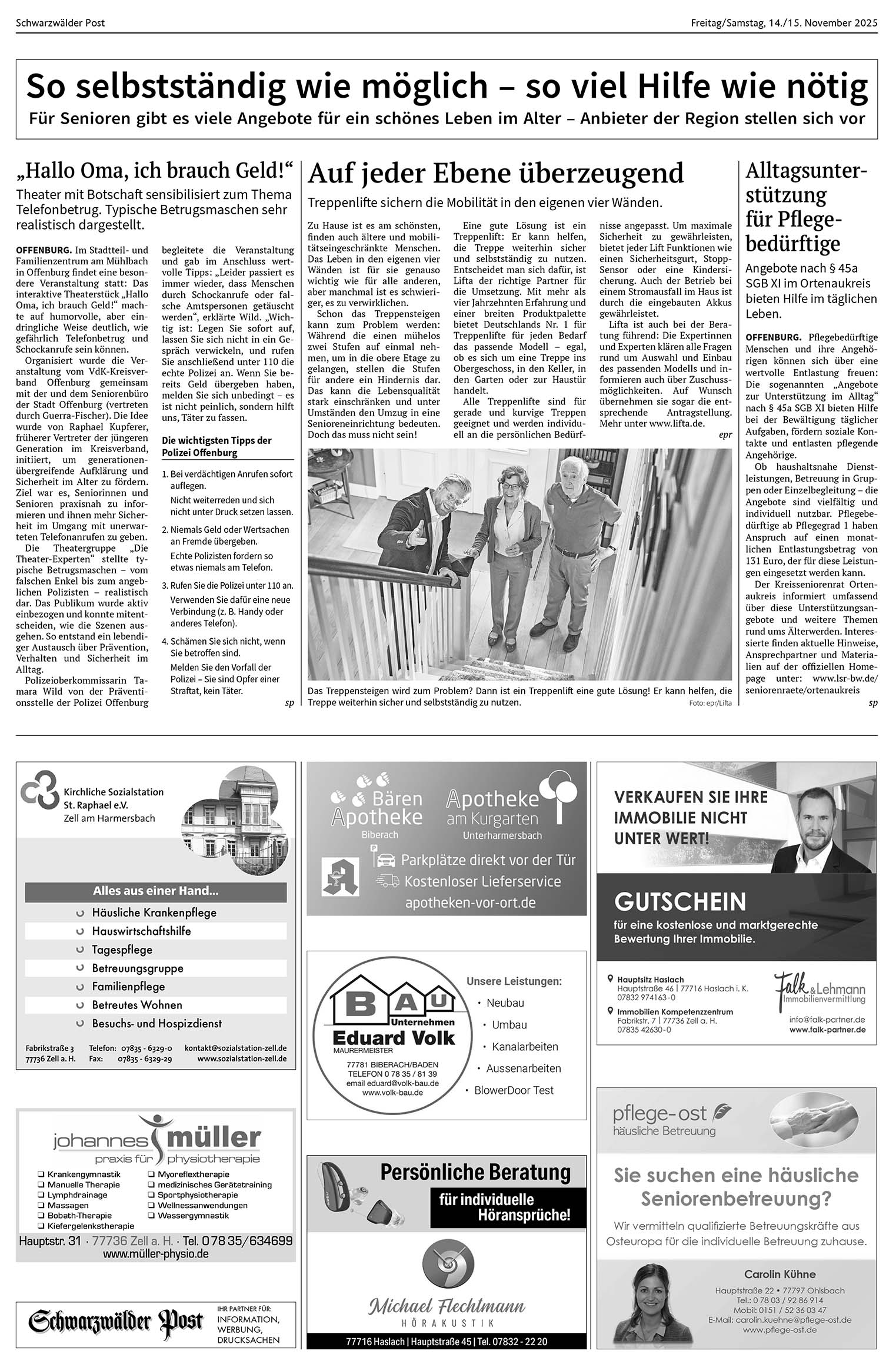 Zell am Harmersbach | 14.11.2025 So selbstständig wie möglich – so viel Hilfe wie nötig Foto:Das Treppensteigen wird zum Problem? Dann ist ein Treppenlift eine gute Lösung! Er kann helfen, die Treppe weiterhin sicher und selbstständig zu nutzen. Foto: epr/Lift von Schwarzwälder PostFür Senioren gibt es viele Angebote für ein schönes Leben im Alter – Anbieter der Region stellen sich vor Foto: SPDas könnte Sie auch interessieren:Foto: Reinhold Messner / MundologiaReinhold Messner: „Der Nanga Parbat hat…Foto: Lions ClubLions-Club Kinzigtal unterstützt vier…Foto: Herbert VollmerEin Sternendorf im Advent