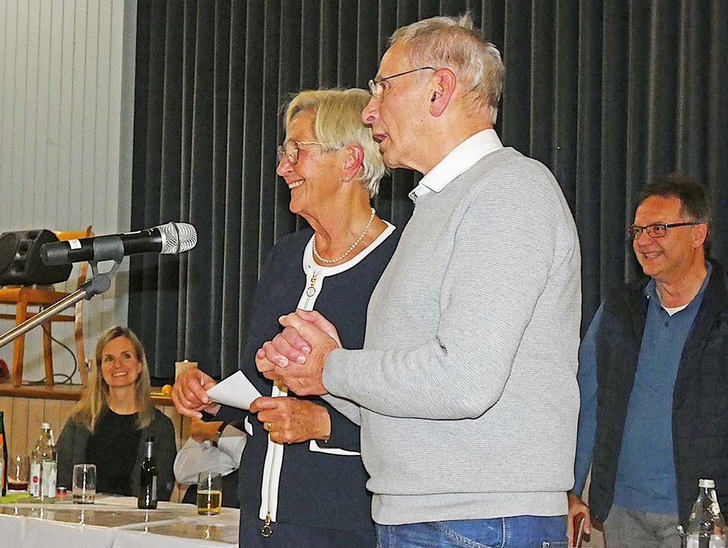 Auf ganze 60 Jahre Vereinsmitgliedschaft bringen es jeweils Karl-Heinz Nock und Wolfgang Spitzmüller. Zu Karl-Heinz Nock: Er war leidenschaftlicher Leistungsturner, begeisterter Tischtennisspieler und auch als Übungsleiter mit viel Engagement im Einsatz. „Die Turnhalle war über viele Jahre hinweg deine zweite Heimat, in der viele Freundschaften entstanden sind, die bis heute Bestand haben. Diese Zeit war für dich etwas ganz Besonderes – und als deine Schwester weiß ich das nur zu gut.“