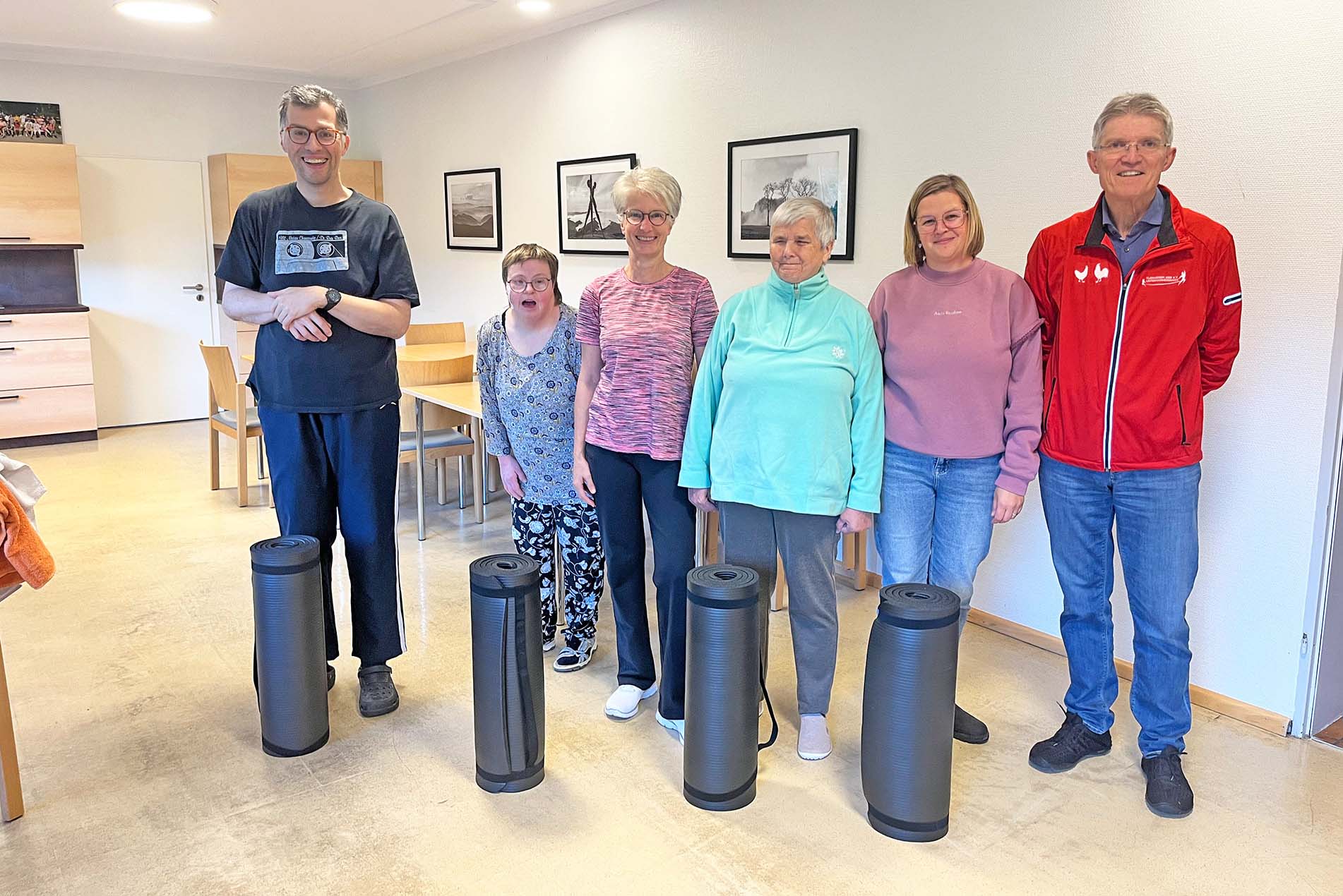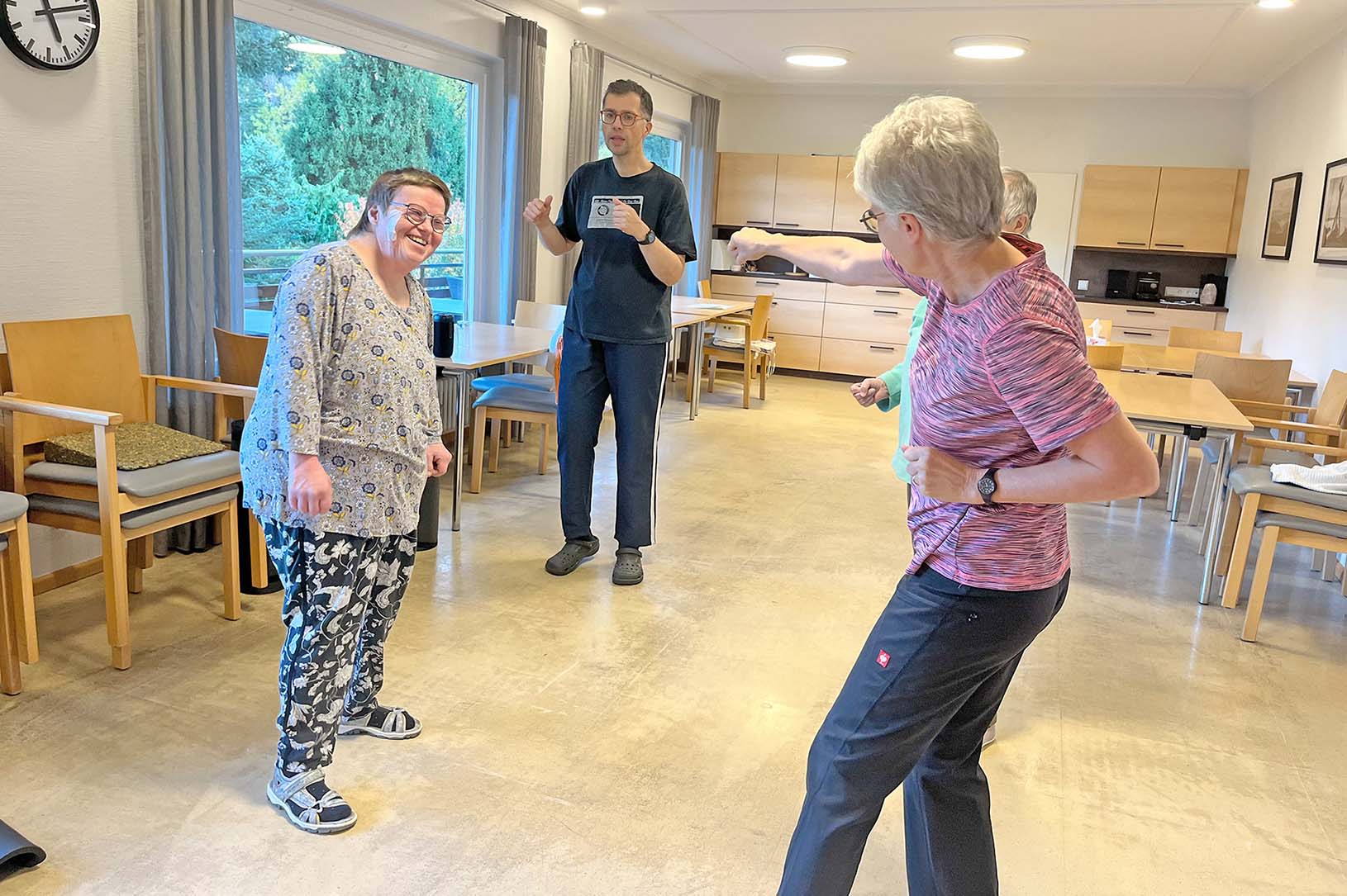 Seit einigen Wochen kommt Petra Schneider, Übungsleiterin des Vereins, im 14-tägigen Rhythmus in das neue Wohnhaus, um dort eine abwechslungsreiche Sport- und Bewegungsstunde anzubieten. Im Mittelpunkt stehen dabei nicht sportliche Höchstleistungen, sondern Freude, Bewegung und gemeinsames Erleben. Mit Musik, humorvollen Einlagen und individuell angepassten Übungen gelingt es ihr immer wieder, die Bewohnerinnen und Bewohner zum Mitmachen zu motivieren. Ob Gymnastik, kleine Ballspiele oder einfache Bewegungsabläufe: D ie Sporteinheiten sind für viele Teilnehmende zu einem festen Highlight geworden.