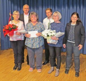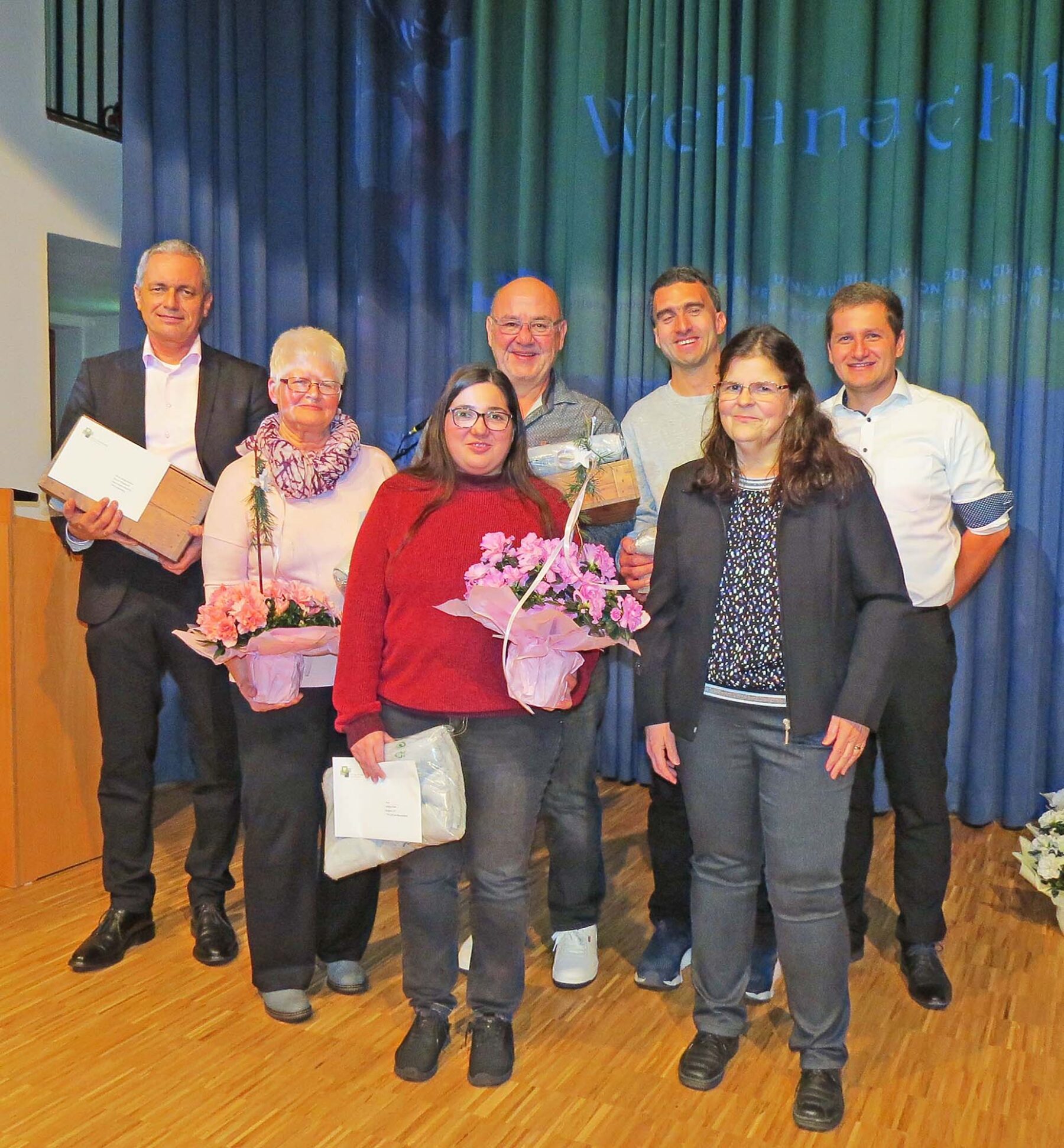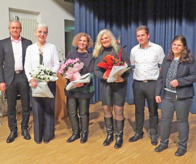 Vier Personen wurden nach einem langen Arbeitsleben in den Ruhestand verabschiedet. Lucia Isenmann hat als Schulsekretärin im Bildungszentrum Ritter-von-Buß gearbeitet. Maria Hiß wurde schon einmal in den Ruhestand verabschiedet. Sie war beim Grundbuchamt angestellt und kehrte zurück, um bei der Grundbucheinsichtsstelle auszuhelfen. Jetzt geht sie endgültig in den Ruhestand. Als Erzieherin arbeitet Rita Armbruster noch bis zum 1. Januar 2026 im Kindergarten Wirbelwind. Als Reinigungskraft im SBBZ wurde Barbara Schwarz verabschiedet. Das Rathausteam Günter Pfundstein, Marius Herrmann und Daniela Herp dankte ihnen für ihren langjährigen Einsatz und wünschte alles Gute für den Ruhestand.