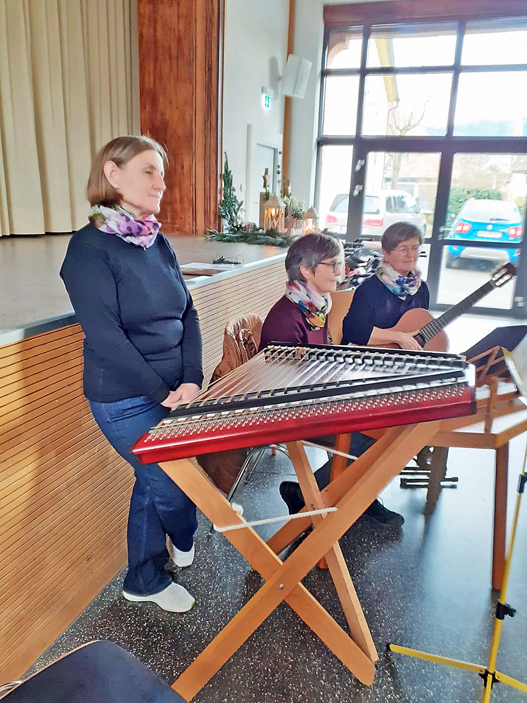 Musikalisch eröffnete die Oberharmersbacher Stubenmusik den Nachmittag. Tamara Laifer (Hackbrett), Sonja Lehmann (Zither) und Agnes Serrer (Gitarre) spannten mit volksmusikalischen und weihnachtlichen Stücken einen ruhigen, warmen Klangteppich – genau richtig, um anzukommen und durchzuatmen.