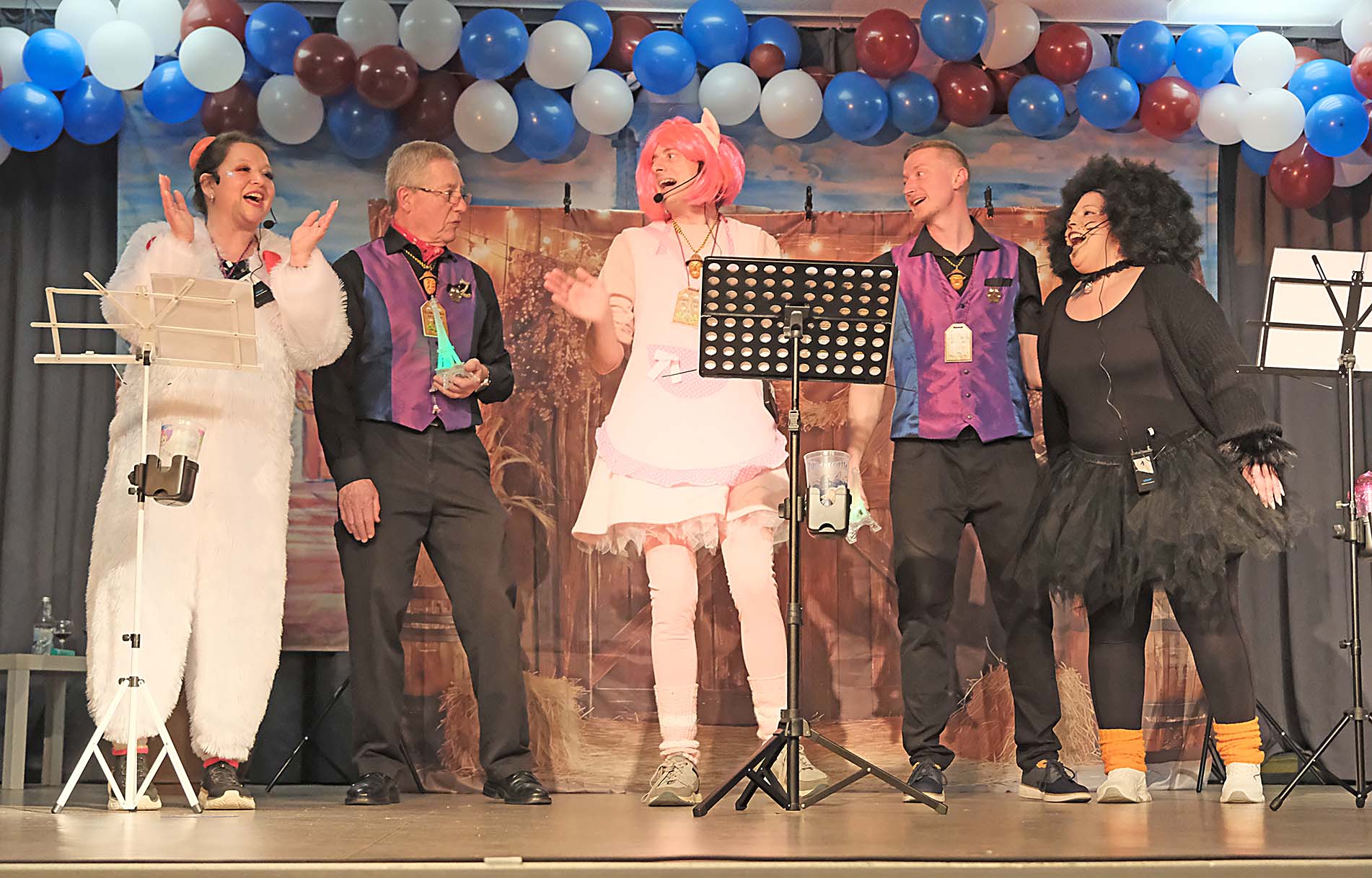 Schorschi und Kersting kehren immer wieder zur Moderation auf die Bühne zurück. Das Schweinchen meldet sich zwischendurch zu Wort, meist aus nachvollziehbaren Gründen. Hunger zum Beispiel. Als es auf der Speisekarte von Kartoffelsuppe mit Wienerle liest, bekommt es mit der Angst zu tun. Kersting zieht ihn hastig weiter. Sicher ist sicher!