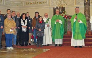 In den Gemeindeteams, den Kernteams, den Seelsorgeteams gelte es zu überlegen: Was sind unsere Werte, unsere Visionen? Sie sollen Orte der Hoffnung und Orte des Glaubens sein, betonte Neubrand. Am Ende seiner Predigt sprach er mehrere Wünsche aus: Er wünschte den Gremien, aus ihren Erfahrungen das Beste herauszusuchen und in das Miteinander der Kirche einzubringen. Er wünschte Gottes Segen allen Menschen, die bisher gestaltet haben und die sich rufen ließen: Dazu nannte er die Gremien der neuen Kirchengemeinde. „Ich wünsche Ihnen Gottes Segen auf dem gemeinsamen Weg. Es gilt Jesus wahrzunehmen und ihm nachzufolgen.“