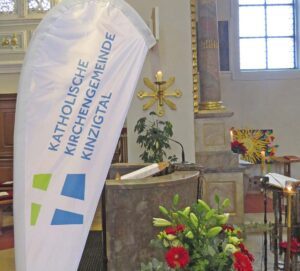 Die Vorsitzende des Pfarrrats, Jutta Uhl, begrüßte die Gläubigen in der voll besetzten Kirche und diejenigen zu Hause, die den Gottesdienst am Bildschirm verfolgen: „Heute ist es soweit: Unsere neue Kirchengemeinde ist eröffnet, der Pfarrer Lienhard wird investiert und alle Pfarreiräte und Mitarbeiter werden ausgesandt.“