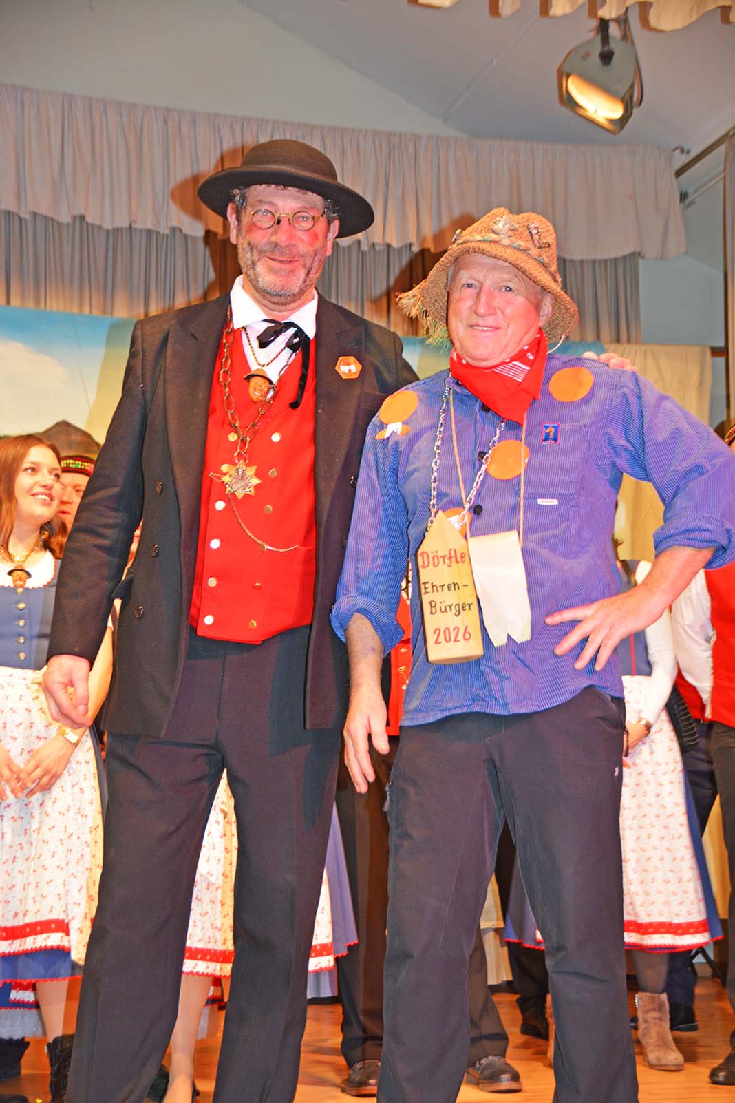 Noch ein Jubiläum: Im vergangenen Jahr konnte das Hotel „Klosterbräustuben“ das 50-jährige Jubiläum feiern. Beim Dörfle-Abend wurde Wirt Paul Lehmann nun noch eine besondere Ehre zuteil: Er wurde zum Dörfle-Ehrenbürger 2026 ernannt.