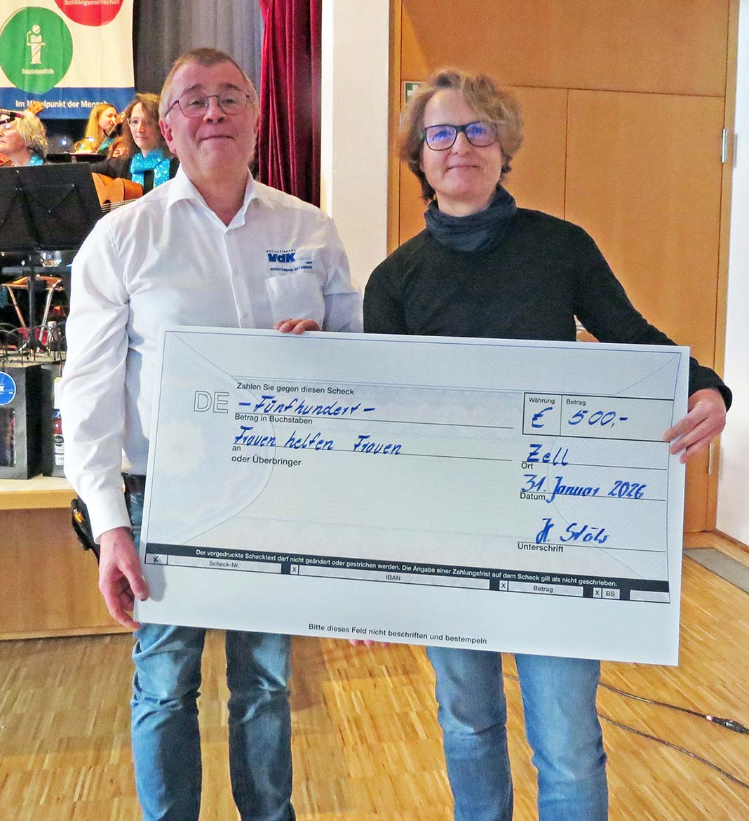 Heinrich Stöhr vom Kreisverband Offenburg übergab eine Spende von 500 Euro an den Verein `Frauen helfen Frauen`. Dieser Verein bietet von Gewalt betroffenen Frauen Schutzräume und Beratung an. Katja Weiten vom Verein stellte die Arbeit des Vereins vor und nahm sehr dankbar den Spendenscheck entgegen.