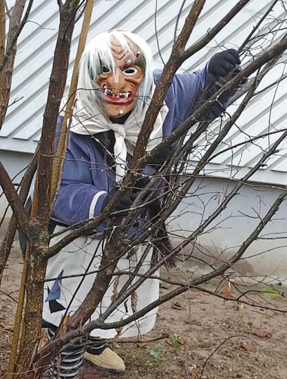 Gemeinsam mit Holzschnitzer Berthold Eble aus Nordrach haben die Vereinsmitglieder die Hexenmaske entworfen. Sie hat im Gesicht keine Warzen, sondern ist mit grünen Tannenzweigen bewachsen und über den Augen und am Kinn sprießen kleine Aststücke. Lange graue Haare umranken das Gesicht mit der hohen Stirn, den tiefen Augenhöhlen, der langen Hexennase und dem löchrigen Gebiss.