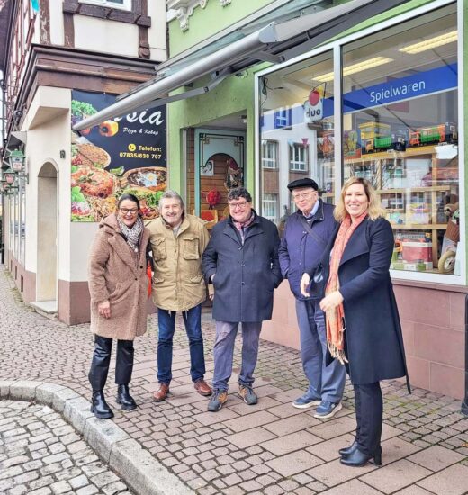 In Begleitung von Gemeinderat Stefan Stehle, dem ehemaligen Gemeinderat Martin Teufel sowie dem Beauftragten des Grünen Ortsverbandes Kinzigtal, Wolfgang Mössinger, besuchte Maren Seifert bereits zum vierten Mal innerhalb weniger Wochen Zell. Unter der fachkundigen Führung von Petra Brosemer, Vorstandsmitglied des HGV Zell, führte der Rundgang durch mehrere eigentümergeführte Geschäfte in der Zeller Innenstadt.