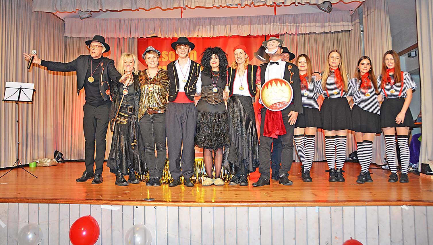 Die Fasendgemeinschaft Lohgass stellte ihre treuen Akteure aufs Podest und sagte mit Gesang und Musik „Vielen Dank für die Jahre“. Fürst Alex, Entertainer Daniel Lehmann und Vorsitzende Susi Dangl nahmen die Ehrungen vor.