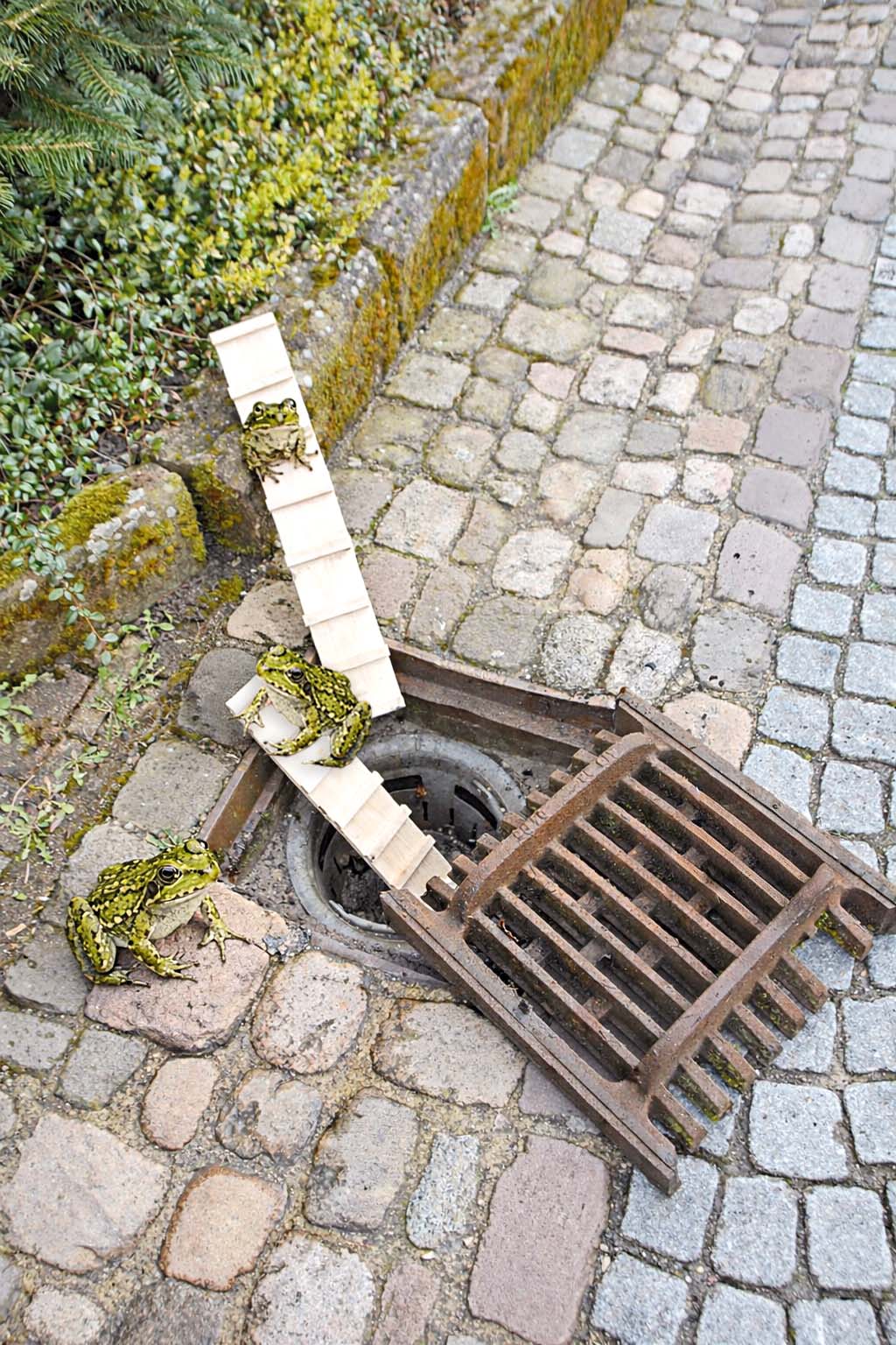 Die Natur hat gerade zwei gewaltige Probleme: Auf der einen Seite finden die Störche im Städle wegen Schnee, Hagelschauern und kalter Temperaturen kaum Nahrung. Auf der anderen Seite verschwinden die wenigen Frösche und anderen Kriechtiere, die jetzt schon unterwegs sind, in den Gully-Schächten und damit in den Kanalsystemen der Stadt Zell.