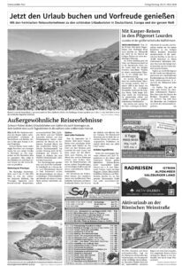 - Anzeige -Zell am Harmersbach | 20.03.2026 Jetzt den Urlaub buchen und Vorfreude genießen Foto:Beeindruckende Bergkulissen, sonnenverwöhnte Täler, idyllische Dörfer: Die fünftägige Muttertagsfahrt vom 9. bis 13. Mai 2026 führt in eine der schönsten Regionen Südtirols. Foto: Schnurr-Reisen / Pixabay von Hanspeter SchwendemannMit den heimischen Reiseunternehmen zu den schönsten Urlaubszielen in Deutschland, Europa und der ganzen Welt Foto: Schnurr-Reisen Das könnte Sie auch interessieren:Foto: Inka Kleinke-BialyBald geht es in die weite Welt hinausFoto: Landesarchiv Baden-Württemberg/Hauptstaatsarchiv StuttgartDie wechselvolle Geschichte der RusslanddeutschenFoto: privatSonnige Tage und schnelle Schwünge
