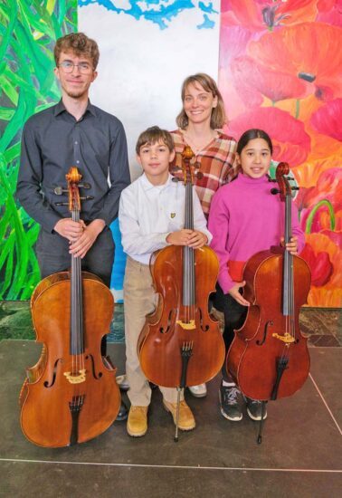 Ebenfalls in der Duowertung Cello trat Christoph Bäder (Steinach) zusammen mit Jonah Steurer (Offenburg, nicht im Bild) in der Altersgruppe V an. Sie wurden für ihre Darbietung mit einem hervorragenden zweiten Preis belohnt. Mit ihren erfolgreichen Schülern freut sich Anne Hilse-Heideker (Cello).