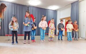 Besonders viel Applaus erhielten die jungen Darstellerinnen und Darsteller mit dem beliebten „Käferlied“. Fröhlich singend und in Käferkostümen tänzelten sie über die Bühne und eroberten die Herzen des Publikums im Nu. Als liebevolle Überraschung verteilten sie zum Abschluss selbstgestaltete Marienkäfer an die Seniorinnen und Senioren. Ohne Zugabe ließ das begeisterte Publikum die jungen Künstlerinnen und Künstler nicht von der Bühne.
