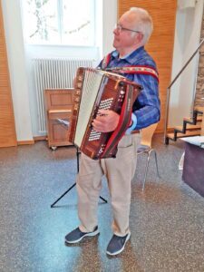 Das Team des FORUM älterwerden bedankte sich herzlich bei den Erzieherinnen Luisa Lehmann, Vanessa Bruder und Michaela Zimmermann-Welle sowie bei den Schulanfängern für die gelungenen Darbietungen. Anschließend war noch einmal Herbert Jilg an der Reihe: Mit seinem Akkordeon spielte er schwungvolle Volkslieder, zu denen aus vollem Herzen gesungen und geschunkelt wurde.
