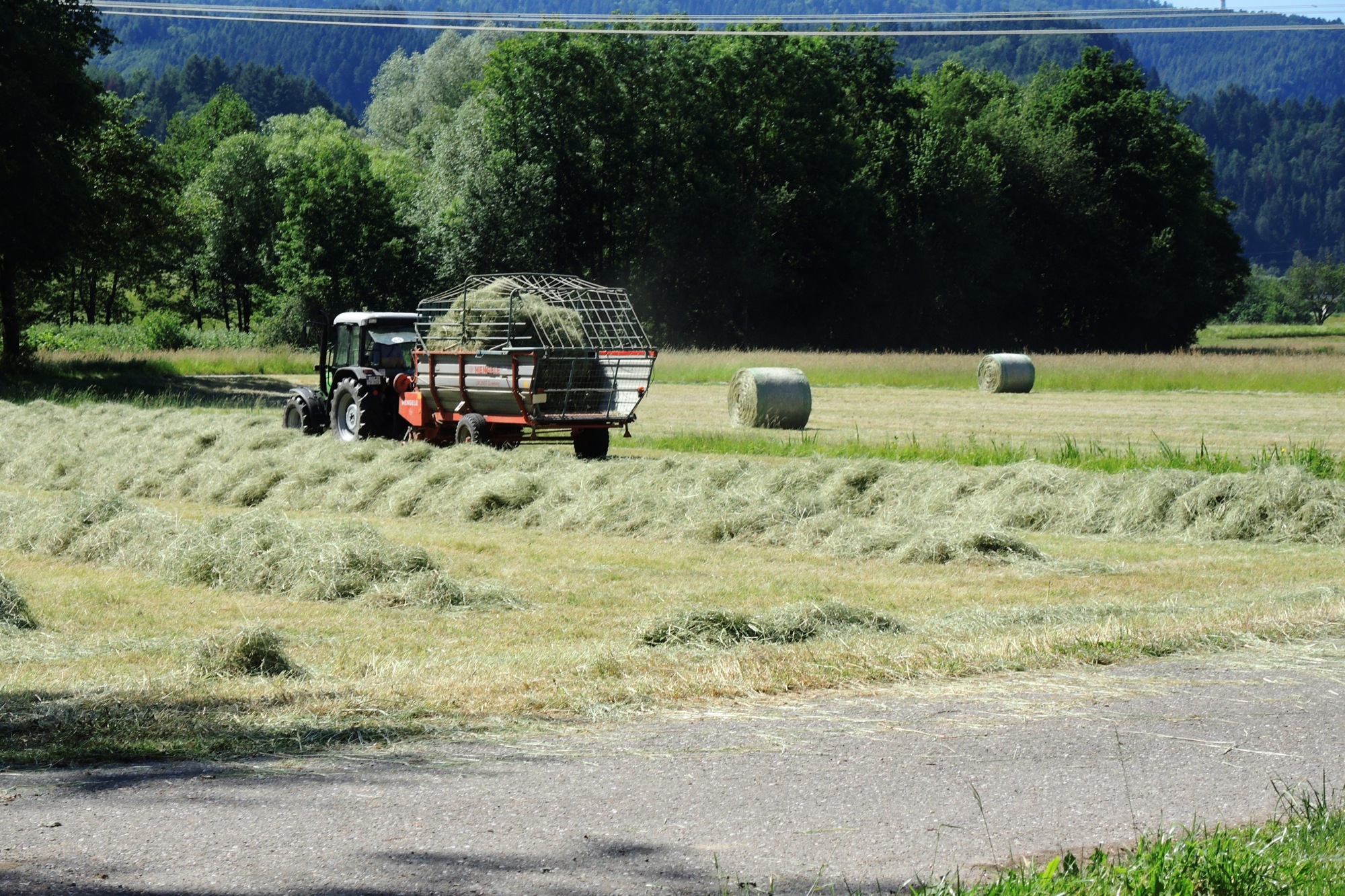 Er hat Fotos gemacht vom Hochbetrieb bei der Heuernte und in Erfahrung gebracht, dass aktuell Heu in einer sehr hohen Qualität erwartet wird. Zum Vergleich hat er ins Archiv geschaut und ein Bild von der Heuernte annodazumal gefunden, als noch der Ochse vor den Karren eingespannt wurde. Ein eindrucksvoller Vergleich – herrlich nostalgisch für all die, die nicht selbst Hand anlegen müssen.