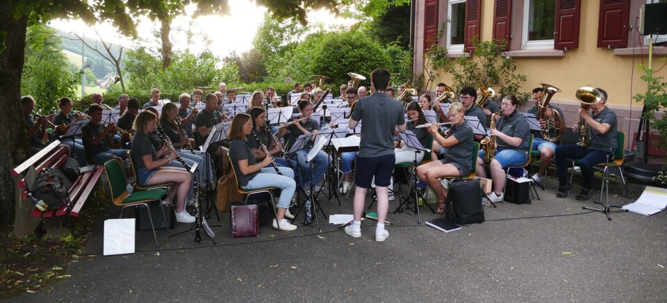 Für die musikalische Unterhaltung sorgte die Musikkapelle Unterentersbach im Schatten eines großen Baums unter der Leitung von Dirigent Daniel Faißt. Die Bierbänke waren gut besetzt, die Gäste zeigten sich begeistert von der lockeren Atmosphäre, dem idyllischen Veranstaltungsort und der schwungvollen Blasmusik. Der Musikverein freute sich über die gute Resonanz und einen rundum gelungenen Sommerabend, an dem sicher keiner nach Hause ging, weil es ihm kalt geworden war.