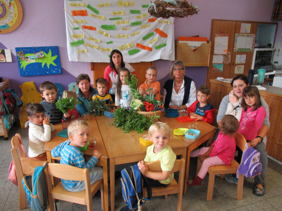 Für die Kindergartenleiterin Manuela Rizner-Kühnel eine erfreuliche Geste und die Kinder freuen sich jetzt schon, wenn ihnen das gesunde Gemüse, egal in welcher Zubereitung, serviert wird. Weiter wurden Teepflanzen, wie Zitronenmelisse, Pfefferminze und vieles mehr überreicht, somit ist der Gesundheitstrank gesichert.