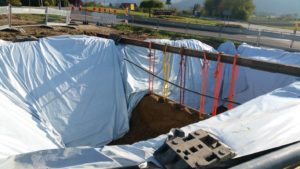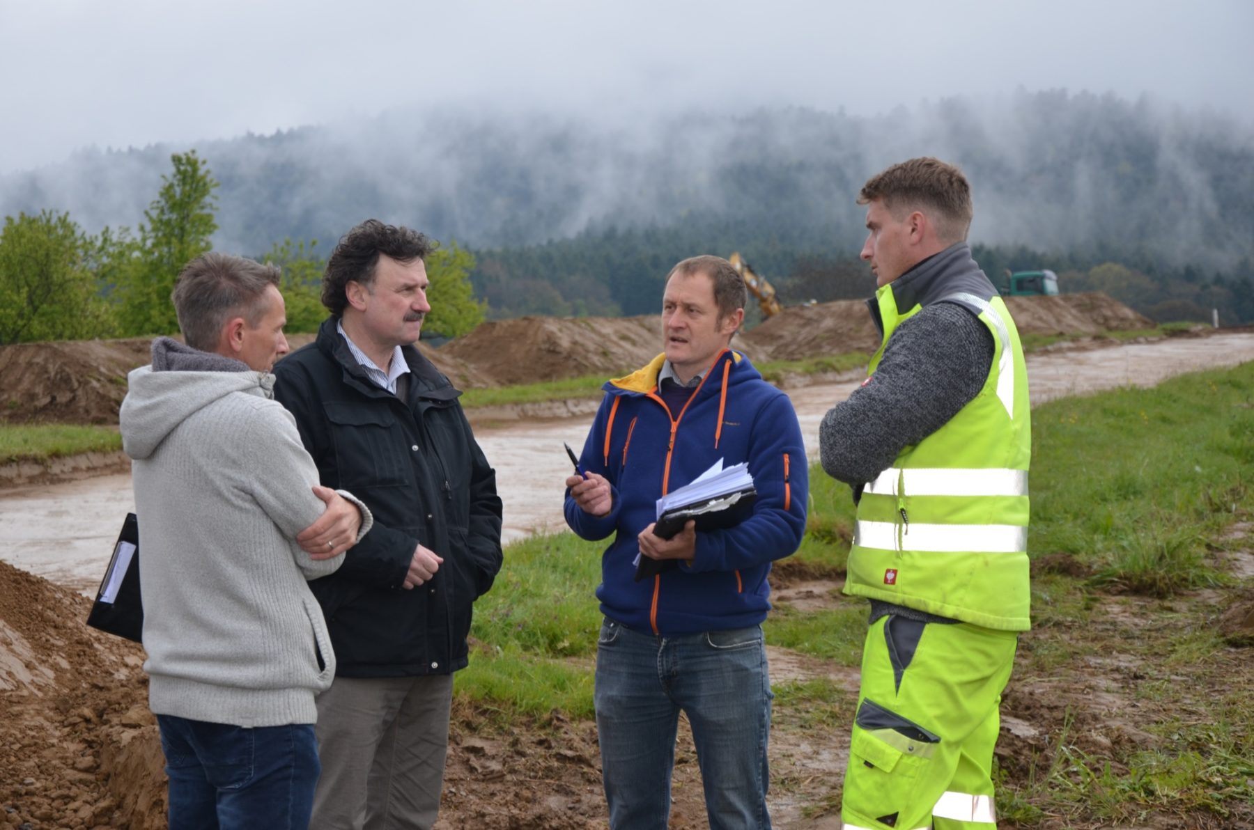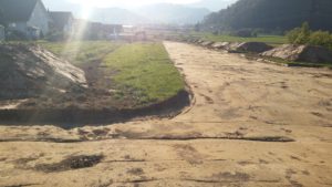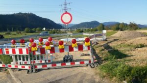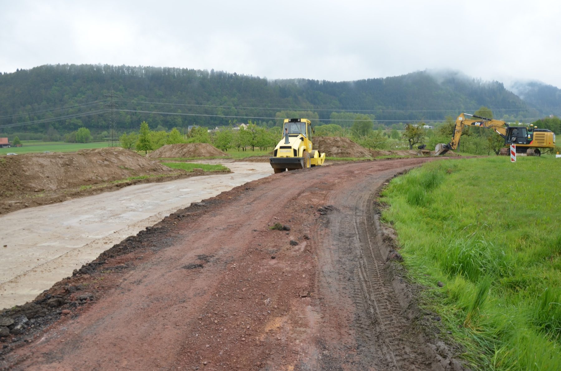 Nach dem Hochwasser im Juli 2014 wurde die Entlastungsleitung geplant. An das westliche Ende des unter der Kreisstraße hindurchgepressten Rohrs wird Polier Griesbaum ein Regenwasserkanal anschließen bis zu einem Schacht am Bahngleis. Dafür wird der Feldweg zwischen Kreisstraße und Bahngleis geöffnet.