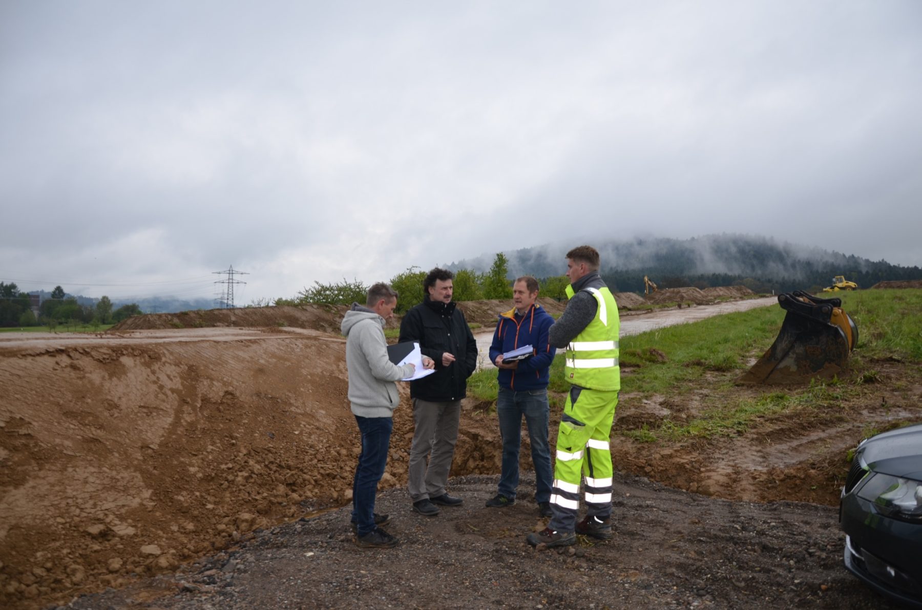 »Humusabtrag, Herstellen des Erdplanums, Kalkung, Schotter zur Baustraße aufbauen – danach wird der Regenwasserkanal verlegt«, zählt Polier Frank Griesbaum vom Unternehmen Knäble Straßenbau die Arbeitsschritte des Anfangs auf. Vor zwei Wochen hat das Biberacher Unternehmen begonnen Erwartungsland auf dem »Unteren Hillig« in Bauland zu verwandeln.