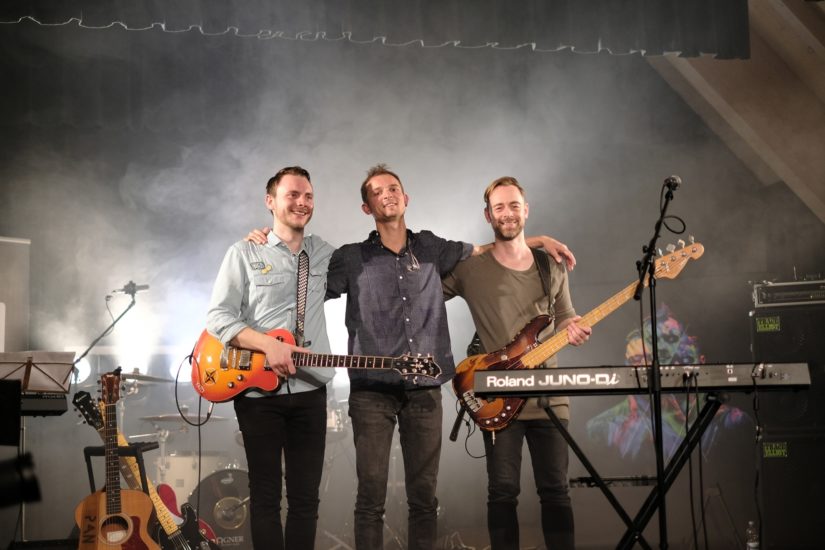 Die erste Hälfte des Abends bestritten Lukas, Sven und Simon in dem gemütlichen Saal unter dem Dach mit den schrägen Wänden mit ihren bekannt melodischen Cover-Versionen von Pop- und Rockhits, bei denen das Publikum gerne mitsang und mitwippte. Mit einem großen Knall, einer Menge Konfetti und »Farbenmeer« beantwortete sich kurz vor 23 Uhr, was von den eigenen Songs der Band zu erwarten ist. »Pan« bieten Popmusik mit deutschen Texten über Themen, die sie bewegen. Themen aus dem Leben, in dem sich auch die Zuhörer wiederfinden. Die große Energie mit der die Band die eigenen Songs vorangetrieben hatte und die Freude daran, sie endlich ihrem Publikum präsentieren zu können, ließ den Funken sofort überspringen. Mit den ersten Tönen des ersten, eigenen Songs, war von der erwartungsvollen Anspannung, die zuvor im Raum lag, nichts mehr zu spüren.