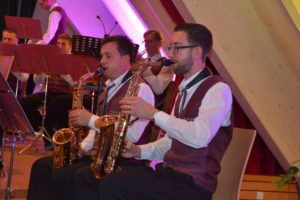 Gleich nach der Pause bewiesen die Entersbacher Musiker, dass sie Rhythmus im Blut haben. Klatschend, klopfend, mit den Fingern schnippend, pfeifend und blasend intonierten sie ganz ohne Musikinstrumente den »Rock Trap«. Bei dieser Body Percussion liefen alle zu Höchstform auf und sorgten für einen Höhepunkt des Abends. Außergewöhnlich war auch der anschließende »Jazz Waltz No. 1« mit den Solisten Alexander Huber und Simon Keller. Letzterer entfachte mit »Annie’s Dream« ein weiteres Klangfeuerwerk. Gefühlvoll und weich bewies er einmal mehr, dass er ein Könner auf der Trompete ist. Hörgenuss boten die unvergesslichen Pop- und Soul-Songs von Amy Winehouse, ehe das Nikolauskonzert mit den Hits der kalifornischen Rockband »Toto« ausklang.