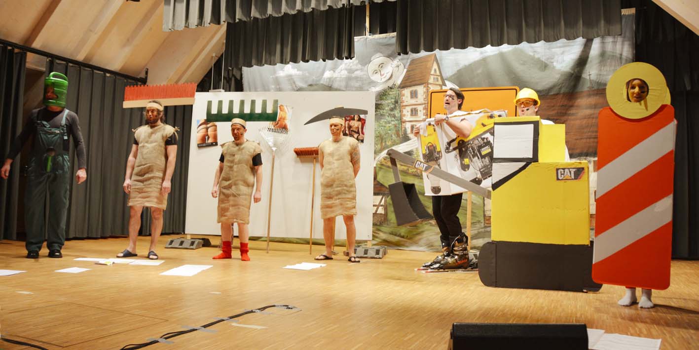 Nach allerlei Schnitzern wurde auf der Entersbacher Narren-Baustelle gegraben. Dort gaben sich Bagger, Pickel, Gießkanne, Schaufel, Besen, Poller und Rüttler ein Stelldichein. »Auf der Insel gibt es jetzt eine Insel« war der munteren Bautruppe nicht entgangen, dass im Neubaugebiet Ziegelfeld 4 mehr Entersbacher als Eingeborene bauen, also dass es jetzt eine neue »Entersbacher Insel« in der Insel gibt. Aber auch im Dorf selbst gab es einige große Löcher zu buddeln, die für Staunen und Spaß im Narrensaal sorgten.