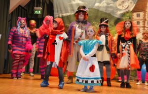 Eine Augenweide sind die Kinder und Erwachsenen, die in diesem Jahr bei den Umzügen am Sonntag und Dienstag als »Alice im Wunderland« durchs Narren-Städtle Zell ziehen. Alice selbst, die Kartensoldaten, die Hutmacher, die Herzkönigin und die Grinsekatzen bilden ein fantastisches Bild. Alle Kostüme wurden selbst gebastelt, nichts ist von der Stange, gab Narrenpräsident Isenmann bekannt und verkündete stolz, dass die Entersbacher mit 30 Kindern, 70 Erwachsenen und zwei Wagen am Umzug teilnehmen.